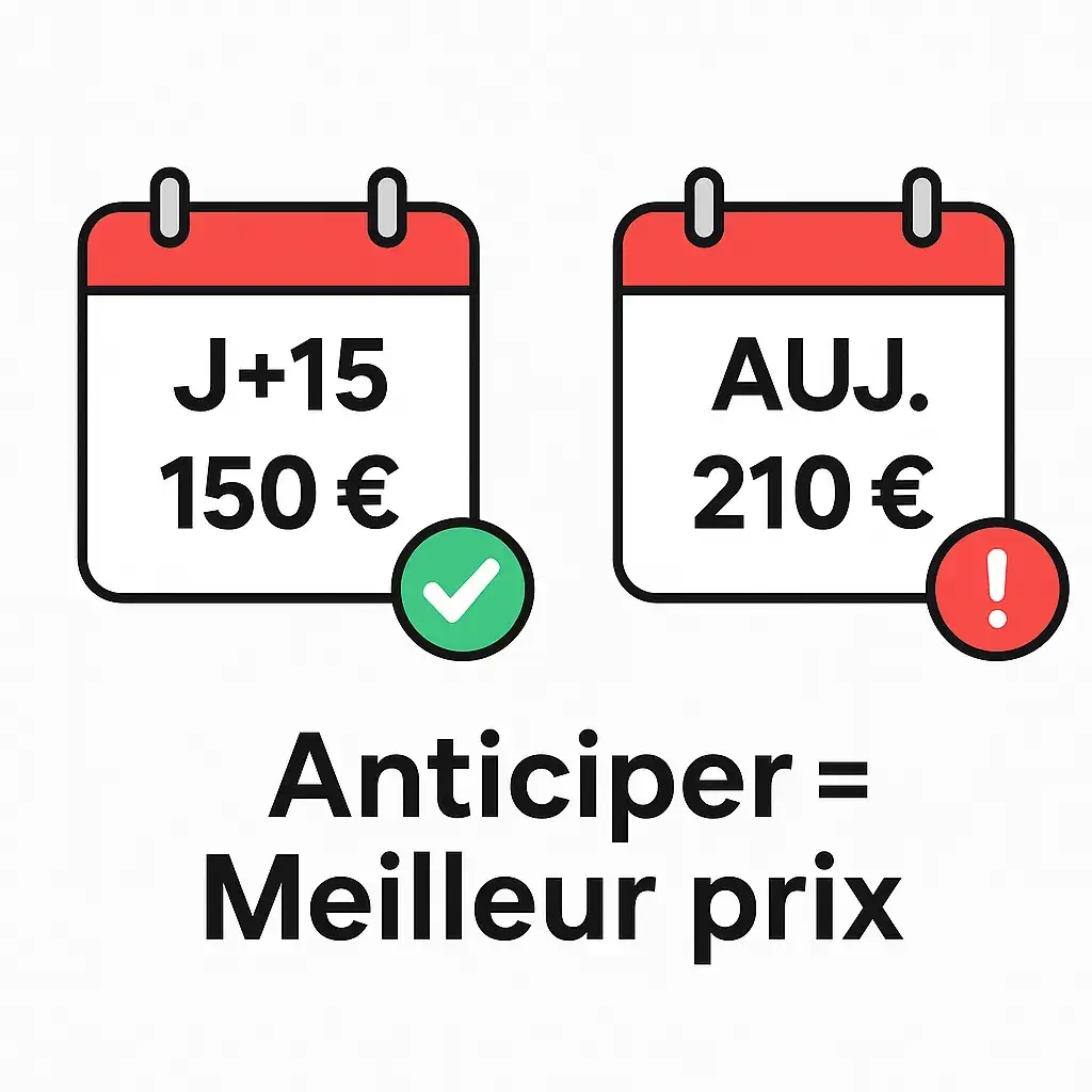 👉 À l’inverse, une demande de dernière minute réduit vos chances de trouver un bon rapport qualité/prix, surtout pendant les week-ends ou les vacances scolaires.